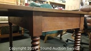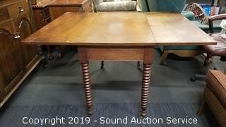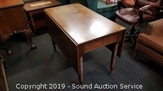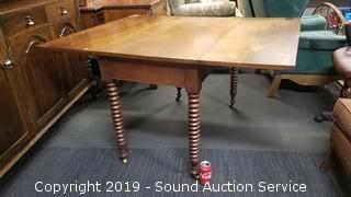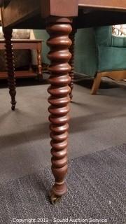 Lot #0014: Vtg. Mahogany Turned Spool Leg Drop Leaf Table