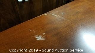 Item Description: Has brass casters, some wear to the finish. 29" H x 42" x 22 to 52".