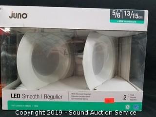 Item Description: Utilitech 650 lumens 2700k color 10.8W, and 2 Juno 650 lumens 3000k color.
