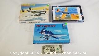 Item Description: BT-9/NJ-1 US Training Plane (inner packaging sealed), Italeri F6F-3 Hellcat, and Pioneer 2 Beach P-45 Expediter (inner package sealed).