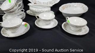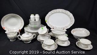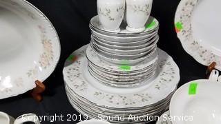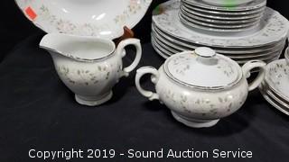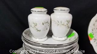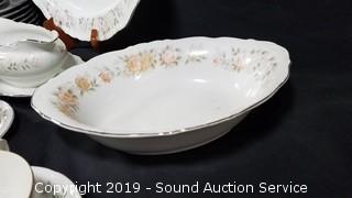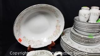 Item Description: (6) Dinner Plates, (6) Snack Plates, (7) Berry Bowls, (6) Tea Cups, (6) Saucers, Cream, Sugar, Salt & Pepper, Gravy Boat, Serving Bowls & Platter.