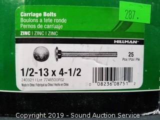 Lot #0287: 50ct. 4.5" x 1/2"-13 Zinc Carriage Bolts