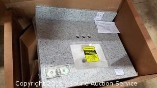 Item Description: 3-hole. Still wrapped in original plastic. Model LAB-0118. Approx. 27" W, 22" D overall. Sink is 11" x 8".