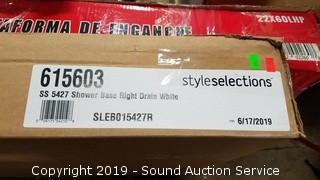 Lot #0370: Style Selections 54x27 White Acrylic Shower Base
