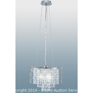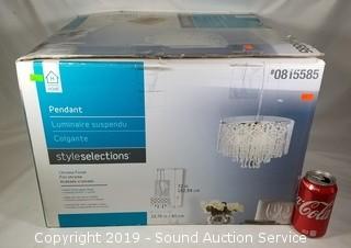 Item Description: Complete, like new, works. Style Selections Royalston Chrome Multi-Light Modern/Contemporary Crystal Drum Pendant Light. Hand blown glass shade, floating crystals inside, chrome finish. 72" H, 15.75" diameter. $189 retail value.