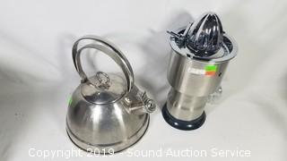 Item Description: Hand crank juicer, tea kettle, mixing bowls, pitcher, tea pot & more.