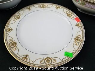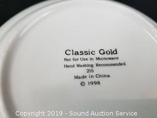 Item Description: 7 Classic Gold bowls (a couple chips), 2 Excel 9" serving bowls, 12 Excel snack plates, (6) Excel 8" bowls, 3 Excel dinner plates, Haviland Limoges plate, and Czechoslovakia covered dish.