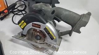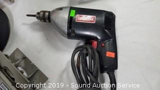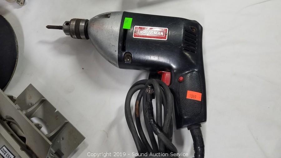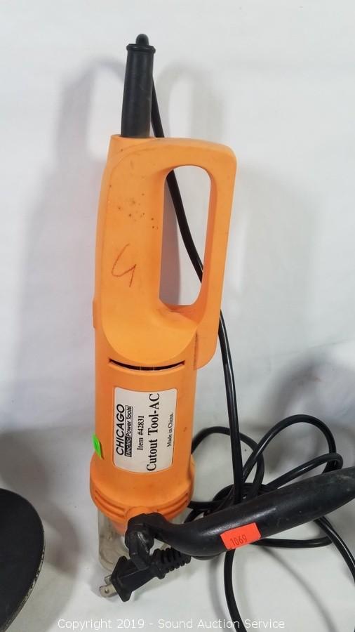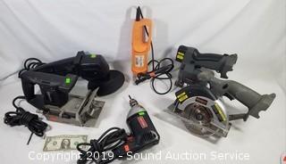 Item Description: Porter Cable plate jointer, Craftsman 3/8" electric drill, Chicago cutout tool, 7" 2 speed sander polisher, Durabilt cordless circular saw and jigsaw (no battery, unable to test). All others work.