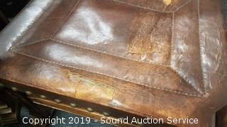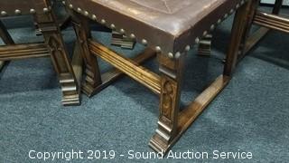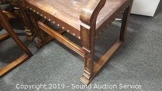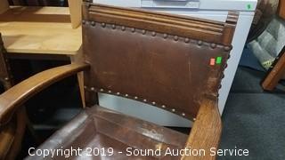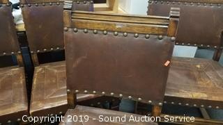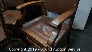 Lot #0356: 6 Vtg. Oak & Leather Nail Head Accent Chairs