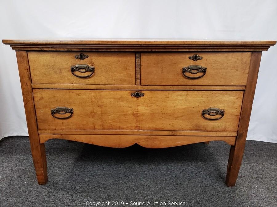 Lot #0147: Antique Maple 3-Drawer Dresser / Console