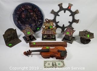 Suit of Armor Bar, Roulette & Black Jack Table Top Bar, Carved mahogany Low Bow Kenny, Vtg. Records, Antique Chest, Italian Stack-able Accent Chairs, Music Instrument Amplifiers, Breweriana Beer Signs, Neon "The Dentist" Sign, Antique 1918 Steamer Wardrobe Trunk, Custom Upholstered {Sofa, Love Seat & Easy Chair}, Beautiful Matching {Dining Table, Credenza & Hutch}, Various Fine China, Tea Sets, Powerful Telescope w/Motorized Base, Antique Twin Beds, JBL & McCauley 18" Subwoofers, McLane 20" Reel Mower, Brass Lamps, Pedestal Lavatory Sinks w/Brass Hardware & Much More!