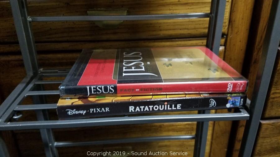 Item Description: 6 are sealed, all contain discs, please refer to photos for list of titles. Tower folds flat, open approx. 53.5" x 11" x 6".
