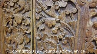 Item Description: Looks to be all hand carved, can see tooling marks, very nice. 80-1/2" H x 43-1/2" W x 5" D.