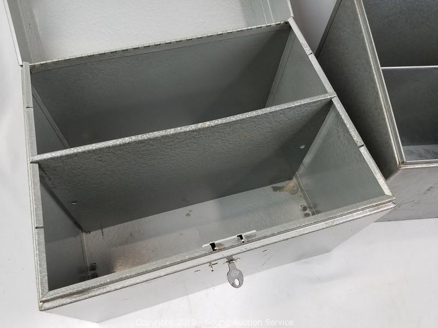 Item Description: One has key, works. Other the lock is a little dented, currently locked, does not have key. Approx. 10" x 13" x 10".
