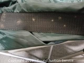 Item Description: 80" x 59" x 8". Base is missing one of the wheels. Some mold on the nylon straps, otherwise like new.