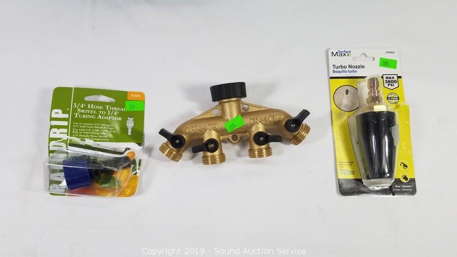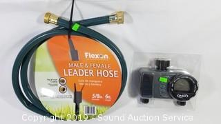 Item Description: Digital Hose Timer, 4-Way Outlet, 6ft Hose, 3/4" Hose Thread Swivel to 1/4" Tubing Adapter, and Turbo Nozzle.