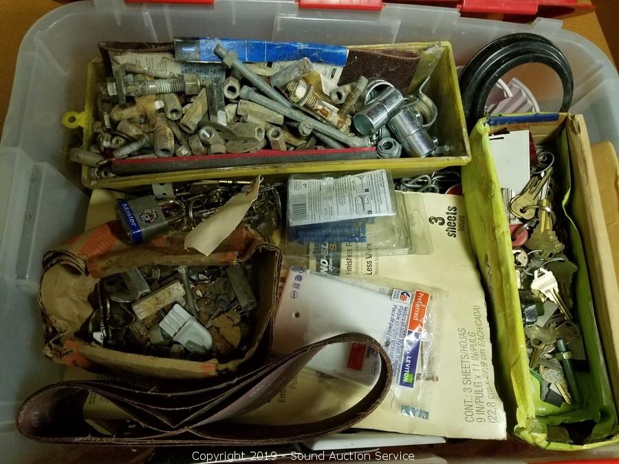 Item Description: Contigo tote included, 12" x 15" x 21". Comes with various nuts, bolts, sanding belts, sandpaper, keys, and tons of other misc. hardware. Please refer to photos or come in to preview for more information.