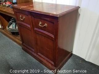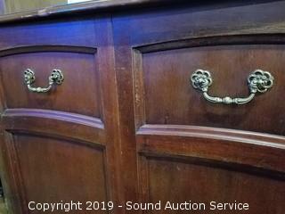 Item Description: Wear to the finish, 4 adjustable shelves. 33" H x 34" x 18".