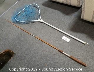 Lot #0257: Vtg. Montague Bamboo Rod & Landing Net