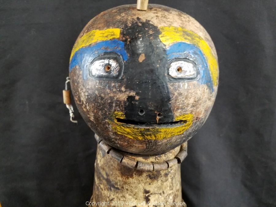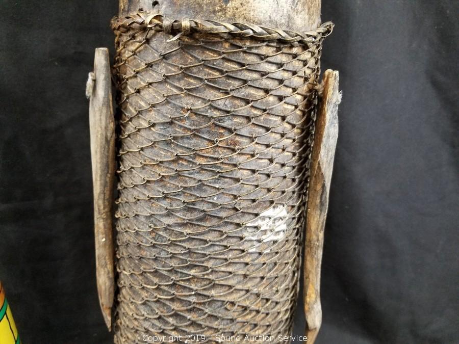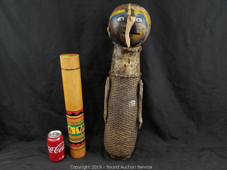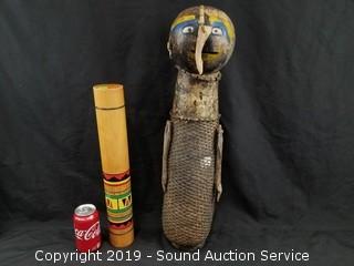 Item Description: Plaques are by artist Gilpan, 20" x 16". Primitive sculpture is 24" H. Rain stick is 17.5".