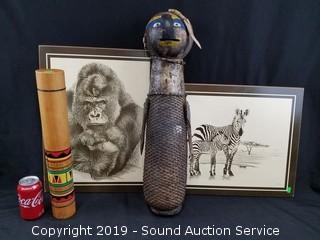 Lot #0276: Zebra & Gorilla Plaques, Rain Stick & Sculpture