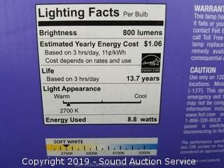 Item Description: 8.8W, 800 lumens, 2700k color. All work. 6 are Feit, 6 are Enhance.