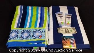 Lot #0140: 2 Beach Towels & Neutrogena Ultra Sheer Sunscreen