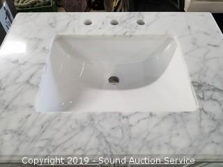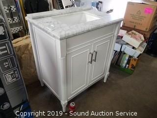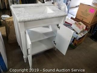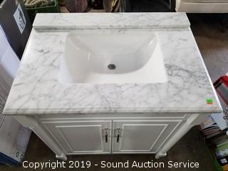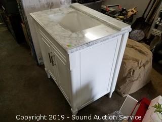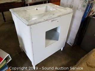 Lot #0027: Like New Marble Top Vanity Cabinet w/Sink