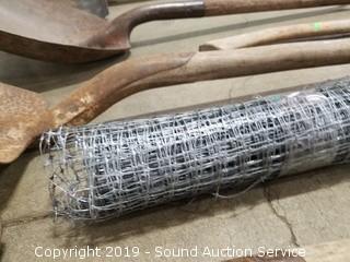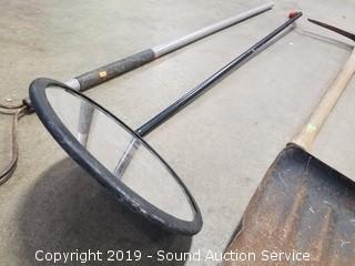 Item Description: 11 pieces total. Vehicle inspection mirror, garden pest fencing (36" x Unknown length).