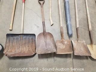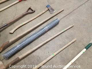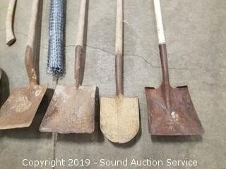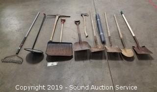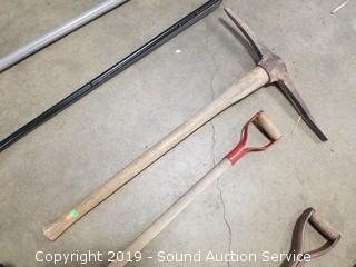 Lot #0048: Lot of Various Shovels, Axe, Pick Axe & More