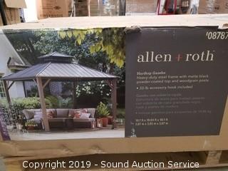 Lot #0019: NIB Allen+Roth Black/Woodgrain Metal Square Gazebo
