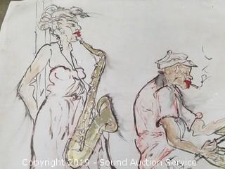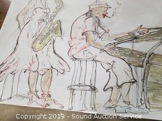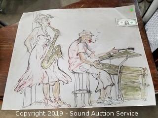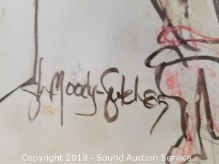 Item Description: Signed ShMoody-Filel? 85. Pen drawn on a thin plastic sheeting. Very nice. 36" x 30".