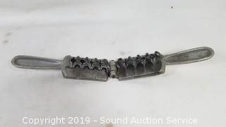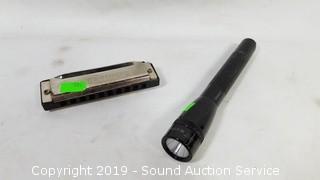 Item Description: West Lake .77cal pellet pistol with custom wood handle (missing the screws), 2 boxes of 52 long rifle ammo, miniature brass abacus, Palmer sinker mold 560, 2006 Zippo lighter, Golden Cup harmonica, and Mini Mag Lite.