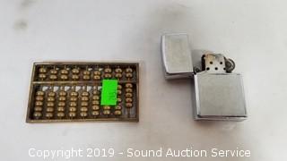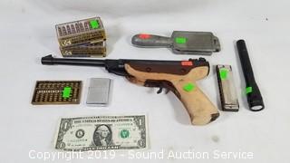Lot #0245: Pellet Pistol, Zippo, .22 Ammo, Sinker Mold & More