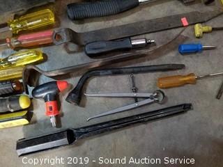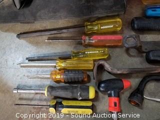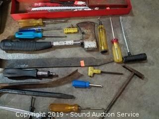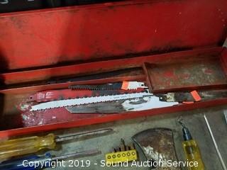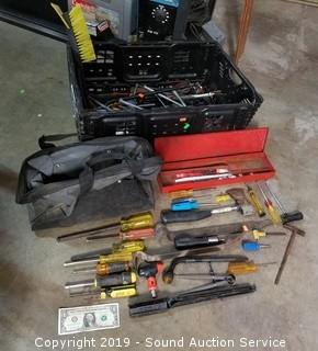 Lot #0274: Tote w/Various Tools & Large Bolts