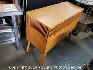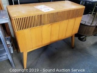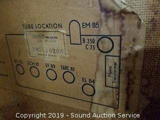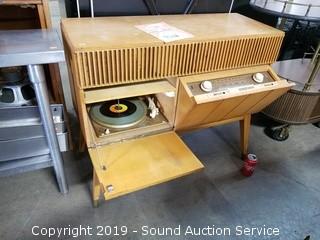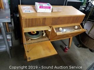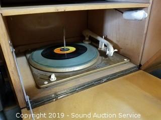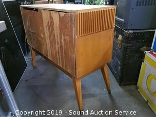 Item Description: Model 7055ML. Powers on, got sound to come out when using broadcast band. Couldn't get the record player to work. Comes with owners manual, record player disc changer & other parts.. 31" H x 36" W x 14" D.