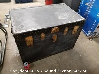 Lot #0022: Vtg. Trunk w/Leather Handles