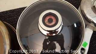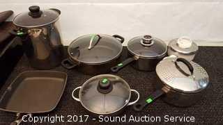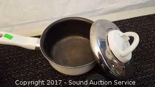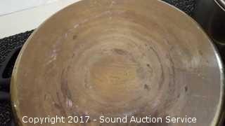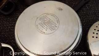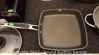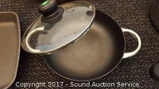 Includes Cook's Essentials 8qt pot, Kitchenaid 9.5 x 9.5" pan, 4 Ultrex 18/10 Stainless Steel non-stick pans with lids & T-Fal Resistal Sauce Pan. All used with lids, some scratches