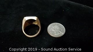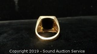 Lot #0358: 10K Gold, Hematite & Diamond Ring S:9