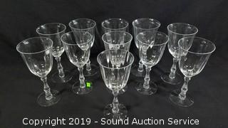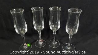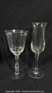 Item Description: 4 Champagne Flutes & 11 Wine Glasses, *" to 9" tall. 13" x 19" tray.