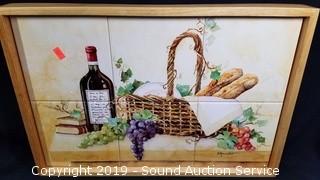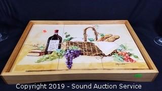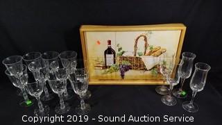 Lot #0034: 15pc Crystal Stemware & Tile Wine Print Tray