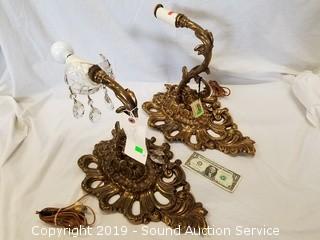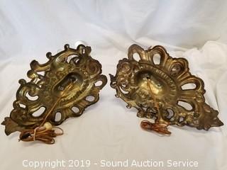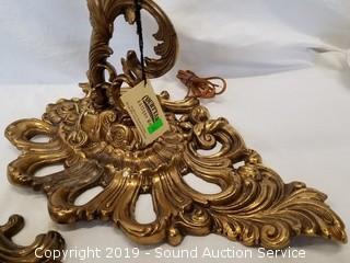 Lot #0094: 2 Ornate Gold Gilded Victorian Wall Sconce Lamps