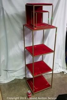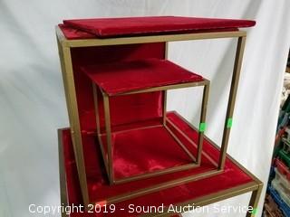 Lot #0087: 3pc Red Velvet Steel Frame Display Shelf