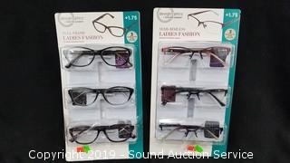 Lot #0341: 6 Pairs Design Optics +1.75 Reading Glasses
