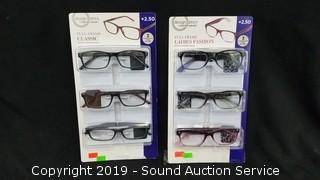 Lot #0343: 6 Pairs Design Optics +2.5 Reading Glasses