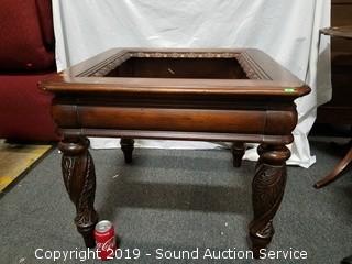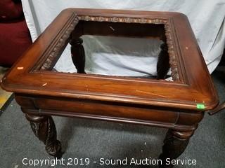 Item Description: Does not have the glass, some wear to the finish. Opening fits glass 19-3/4" x 20-1/8". Overall 24" x 28" x 28".