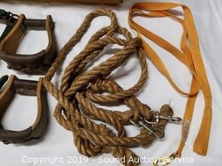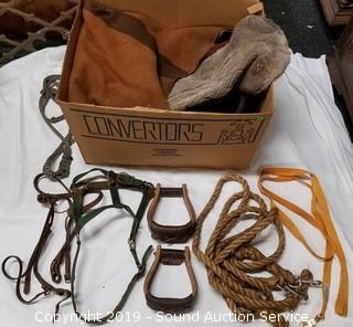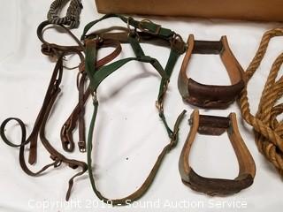Lot #0019: Equestrian Bridles, Ropes, Stirrups & Blankets
