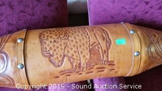 Lot #0354: Large Leather Accent Buffalo Horn Mount
