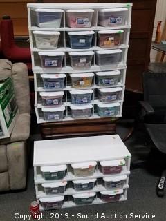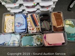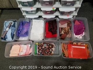 Lot #0060: Organizer w/Totes of Sorted Quilting Fabric