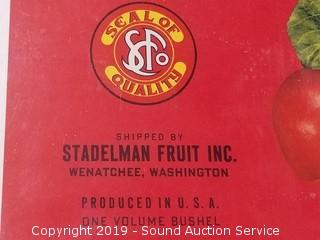 Item Description: Mint condition, in protective plastic. Red label 8-3/4" x 10". Stadelman Fruit Inc. Wenatchee, Washington based company.